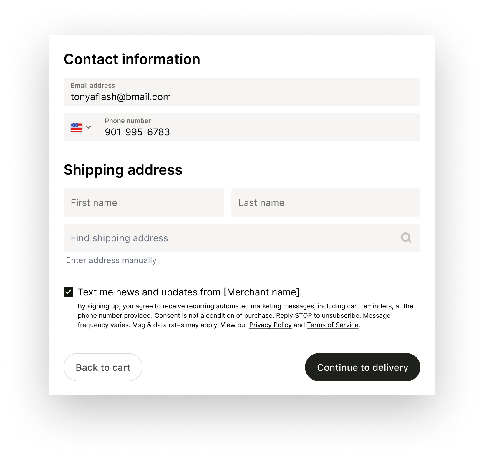This was definitely not ideal because it meant we could only send SMS messages to previous shoppers or shoppers who abandoned on a later step after consent, so we worked out a way for future iterations to be able to tap into merchants existing SMS consent base.