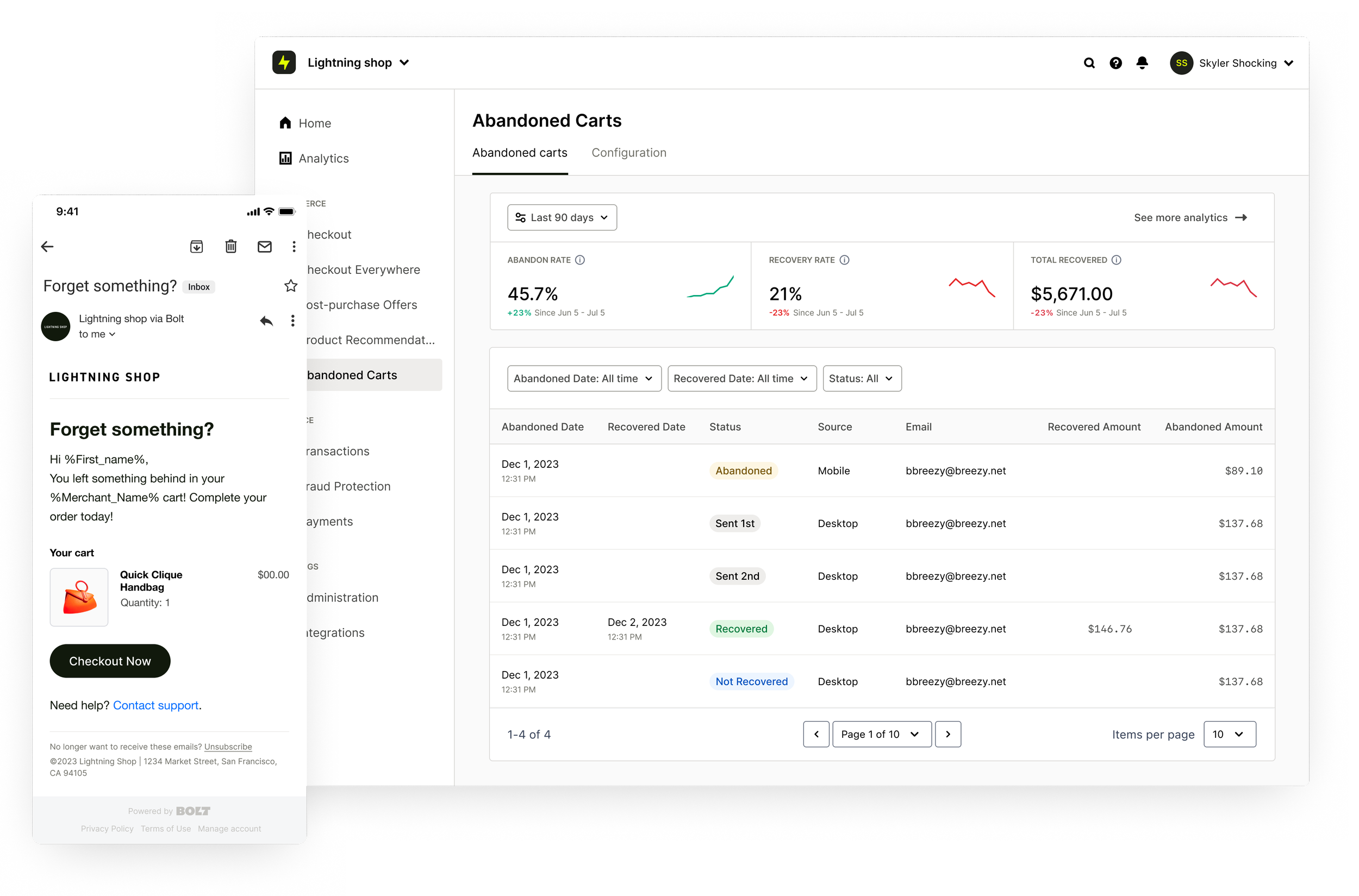 Despite Bolt Checkout’s streamlined and efficient purchasing process, the current abandoned cart feature lacked sophistication and efficacy. By failing to effectively re-engage customers and point them to items previously added to their carts the existing feature led to missed opportunities in recovering potentially lost sales.
