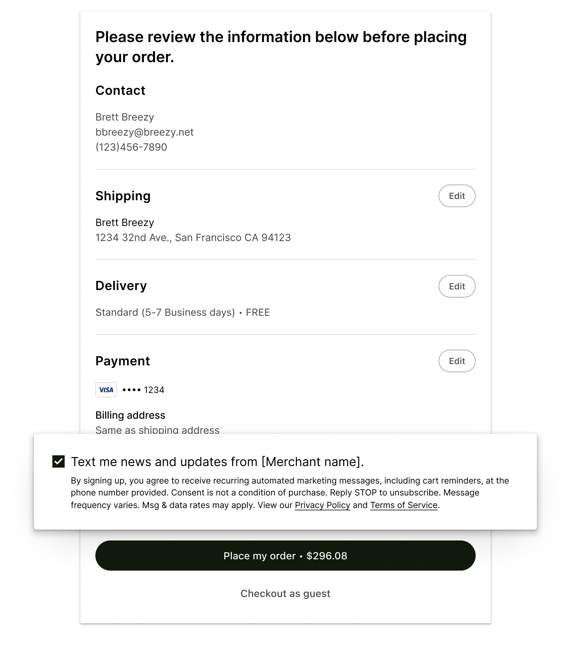 I worked with the legal team to construct this messaging that would appear within our checkout surface to gain consent from shoppers during their checkout flow.