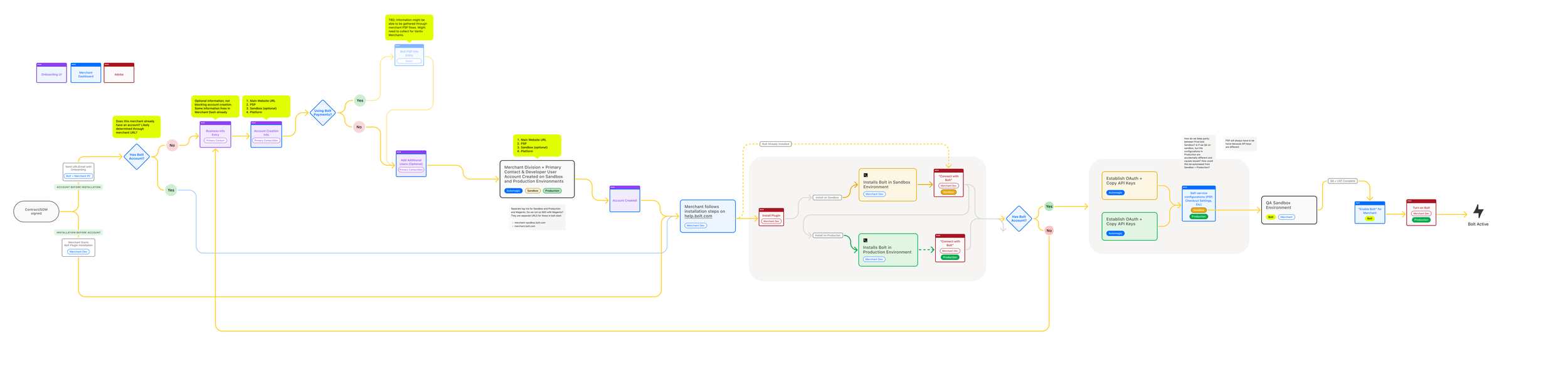 As a close followup to the initial flow redesign, more automated work would be completed to connect with Bolt systems and automate the creation of Production and Sandbox accounts.