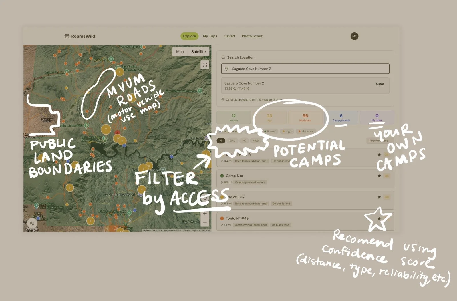Creating a location intelligence platform for discovering dispersed campsites, scenic routes, and photo-worthy landscapes using terrain, data synthesis, and AI-assisted scoring.